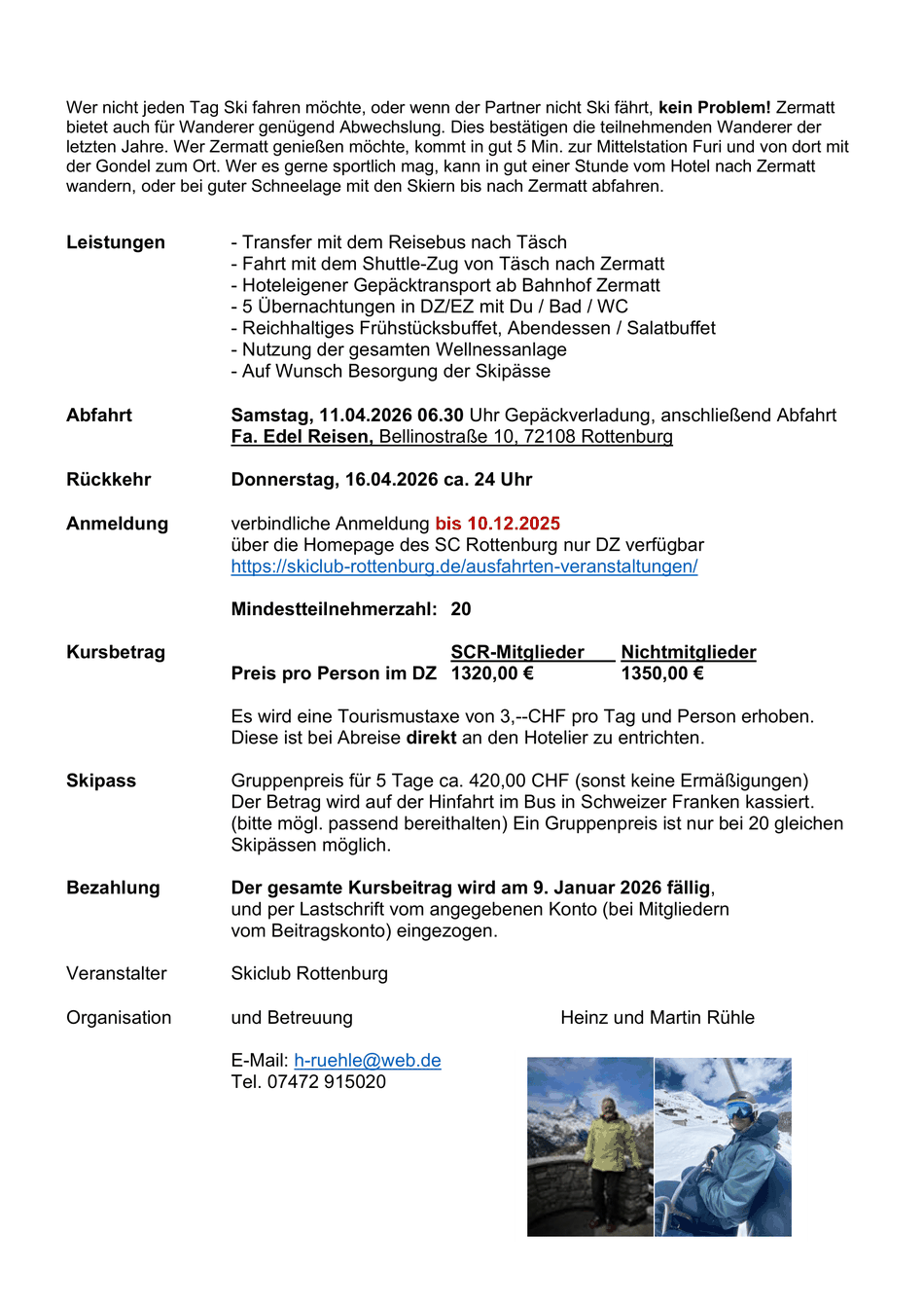 Für Mitglieder des Ski-Club-Ammertal gelten die ermäßigten Preise für SCR Mitglieder.